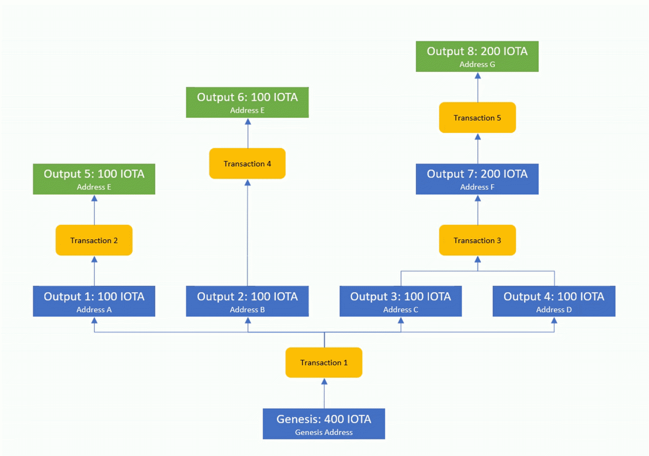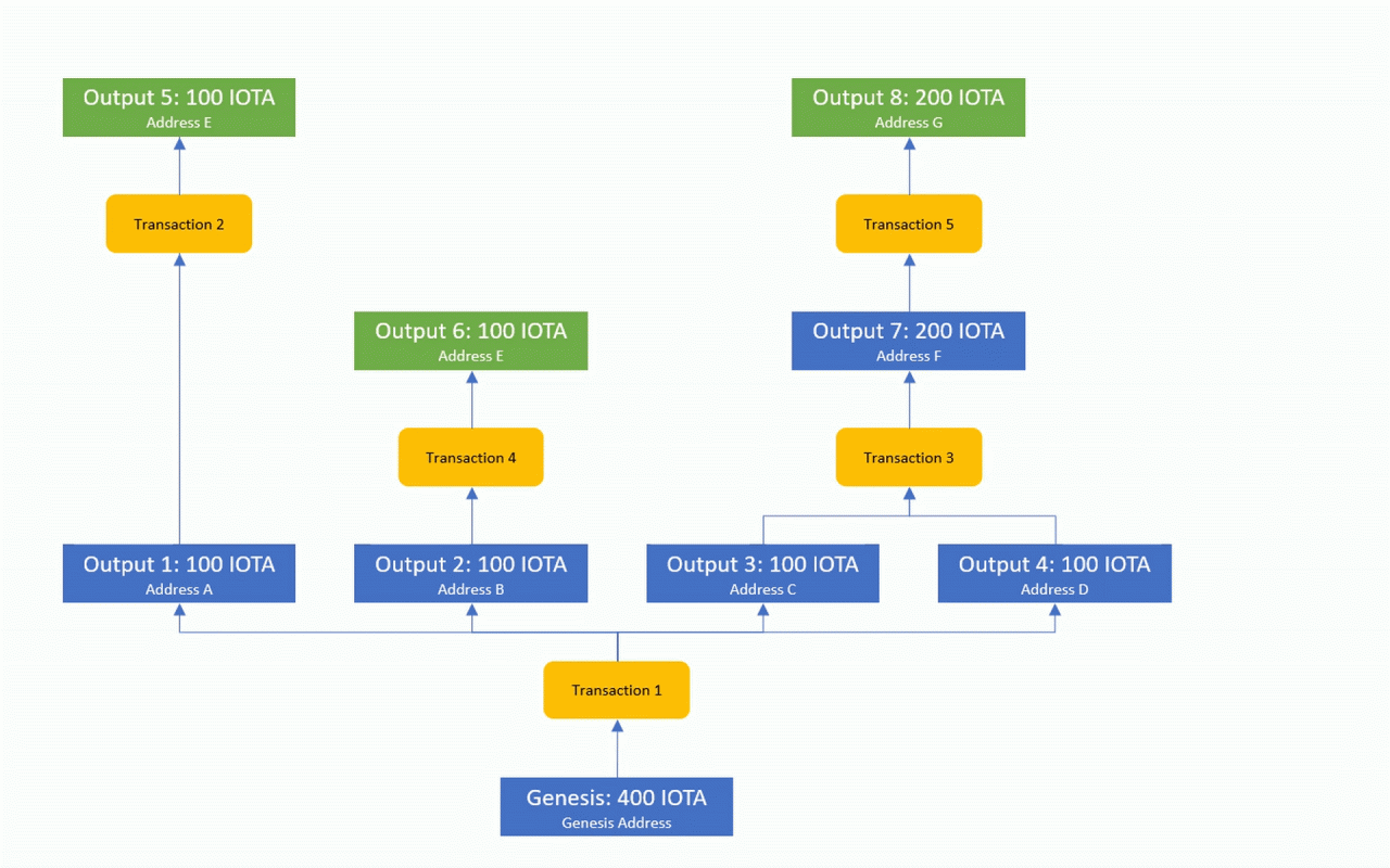 账本不再追踪与不同科目相关的余额(这只是为了让人类更容易阅读账本而必须的),而是单独追踪余额。每当一个余额被某项交易花掉时,它就被标记为“已花掉”,而新的余额则是相应交易的结果。