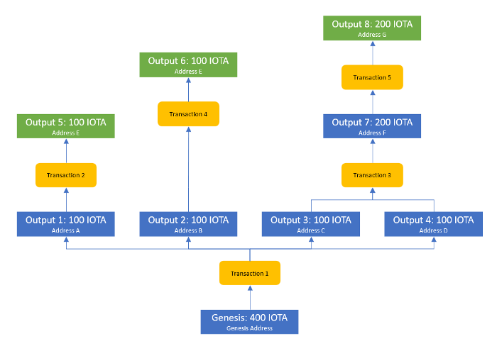 一种方法是将其建模为一个DAG,其中交易是连接所有曾经存在过的输出的边。
