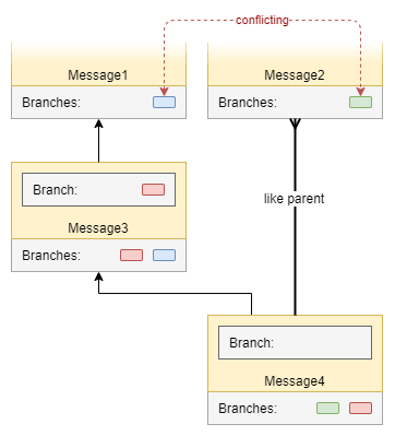 Message4忽略蓝色分支,因为它与绿色相冲突,我们更认同绿色(与我们的特定的认同父类)