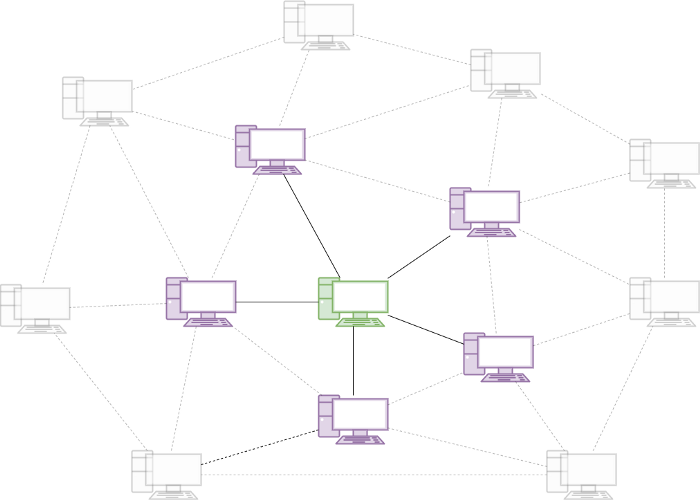因此,一个想要发布交易的节点向其所有的邻居发送一条带有交易的消息,这些邻居将更新他们的账本并递归地传递该消息。