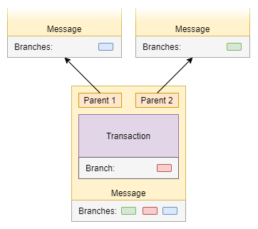 一个消息所投的分支是通过连接其父辈和所包含的事务的分支来确定的。