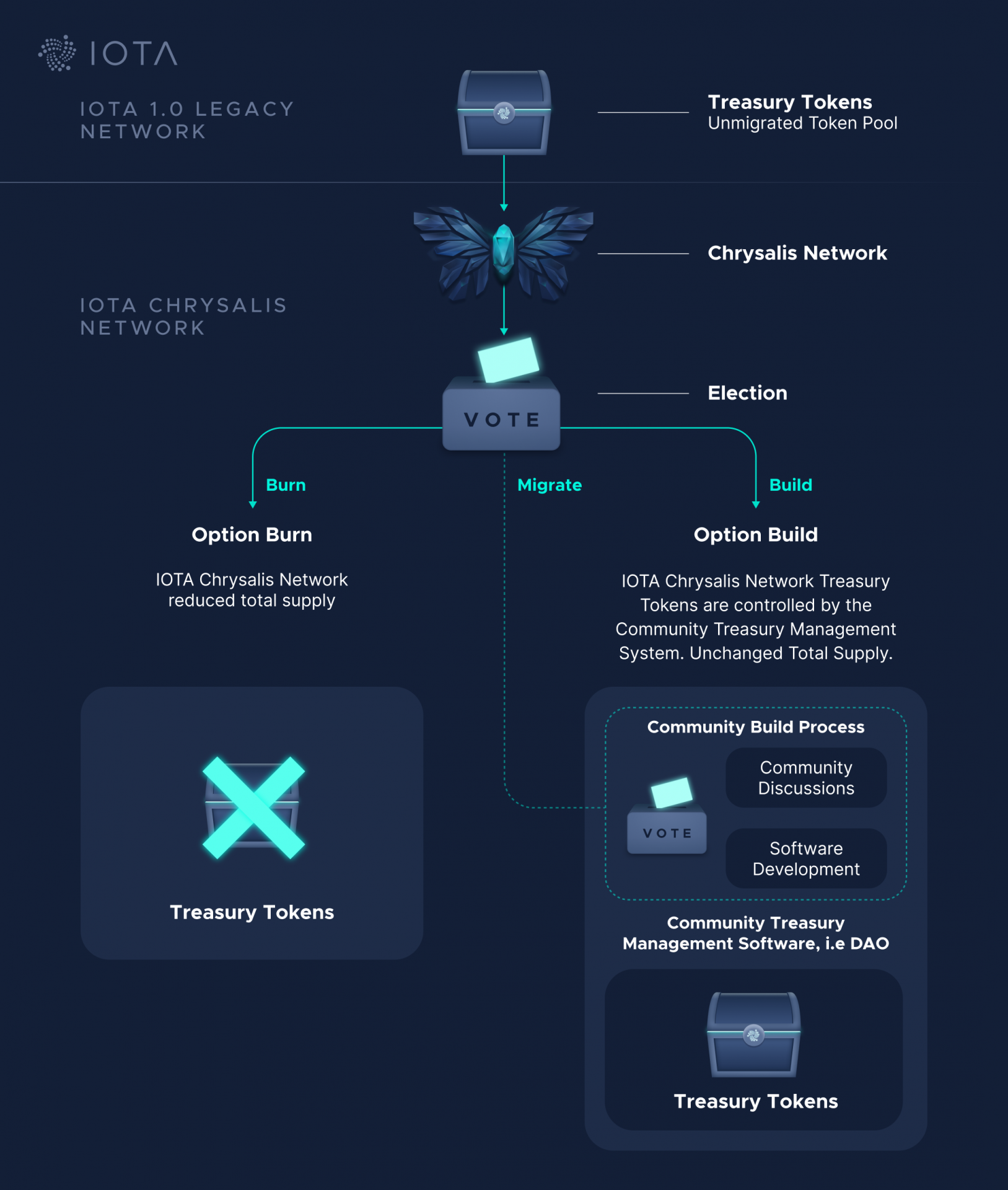 如果金库投票的结果是 “Build”,它将启动一个社区驱动的开发过程,使IOTA社区能够通过后续投票决定创建治理系统的下一步。初次投票后,代币将不会自动释放。首先,社区将需要确定应该建立什么样的治理系统来控制代币所有权。在建立这个治理系统后,将由社区来管理IOTA代币的使用。