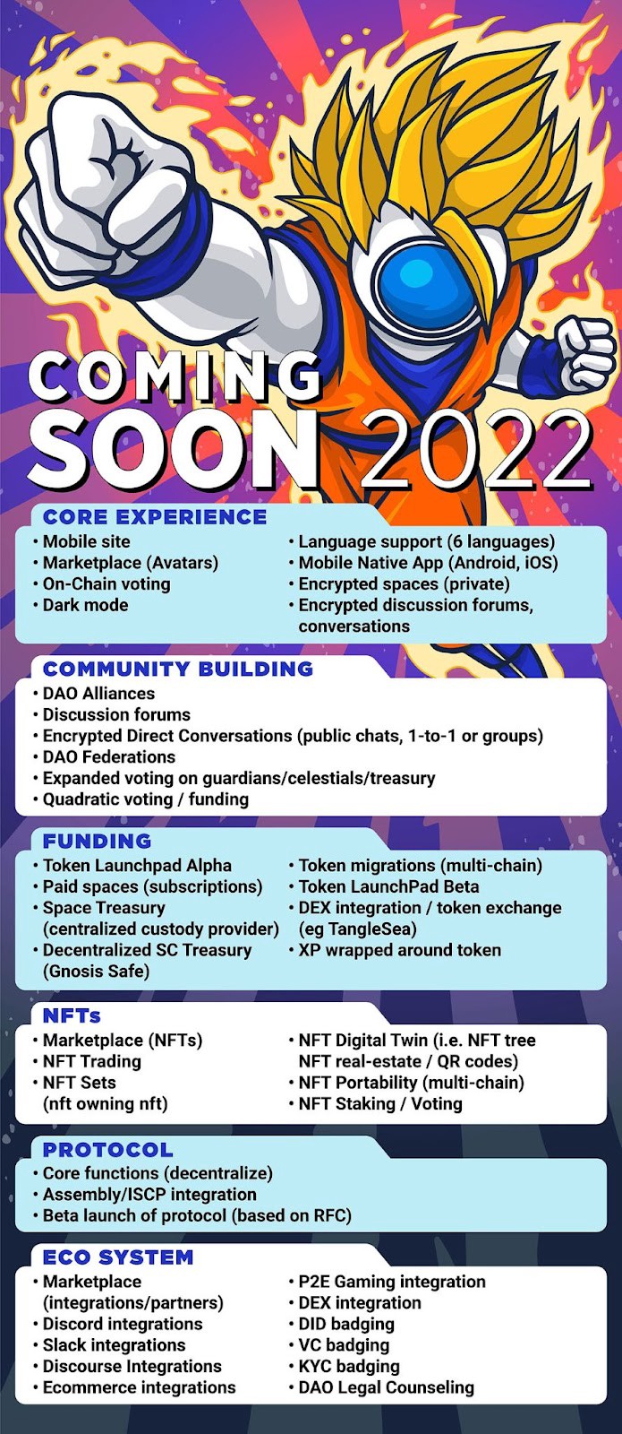 前面有提到Soonaverse整个开发的迭代速度非常快,除了上面提及的功能和预计上线的功能之外,Soonaverse在2月的一篇文章中给出了他们2022年的一个开发计划。如下图所示: